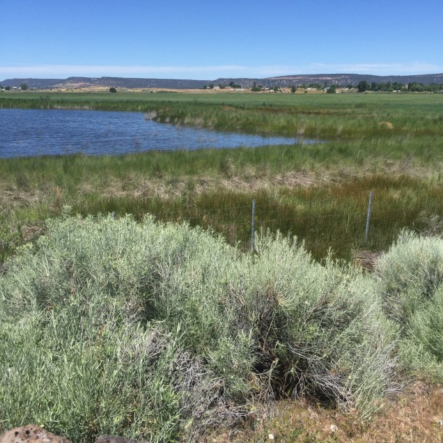 Schon seit einiger Zeit zeichnet sich ab, dass wir an den Rand der Wüste kommen.  Dies zeigt sich daran, dass der Talboden sehr grün ist, ganze Vogelschwärme unterwegs sind und dass ab und zu eine Brücke über ein gurgelndes Bächlein führt.  War der Honey Lake noch ein „richtiger“ Wüstensee (=Salzpfanne –> kein Wasser, zumindest in dieser Jahreszeit), so waren immer häufiger Oberflächengewässer zu beobachten, die scheinbar das ganze Jahr Wasser führen. Heute fuhren wir in die Feuchtgebiete südlich von Alturas hinein. Bei einem Fotostopp nutzten wir die Gelegenheit und beobachteten die Wasservögel. Gänse, wie wir vermuteten. Doch sie hatten riesenlange Schnäbel! Pelikane? Da wir schon in Albanien Pelikane beobachtet hatten, sind wir ziemlich sicher. Und das Internet bestätigt den Sommeraufenthalt des Amerikanischen Weissen Pelikans! Super schön!