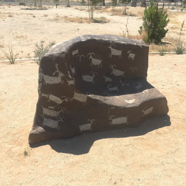 Heute ist Museumstag. Es sind 40 Grad vorhergesagt und in Fahrenheit sehen die Zahlen nicht unbedingt angenehmer aus. Nach dem Frühstück und einem ausgiebigen Schwumm machen wir uns auf ins Maturango Museum, wo wir uns zur örtlichen Geologie (Bergbau und Geothermie), Flora (Joshua Trees), Fauna (Mountain Lions und anderes), Kultur (Felsgravuren!!) und Wirtschaft (Rüstungsindustrie) informieren. Dies alles in einem überschaubaren Raum, klein, aber fein. Sehenswert ist auch die Aussenanlage mit dem „Botanischen Garten“.