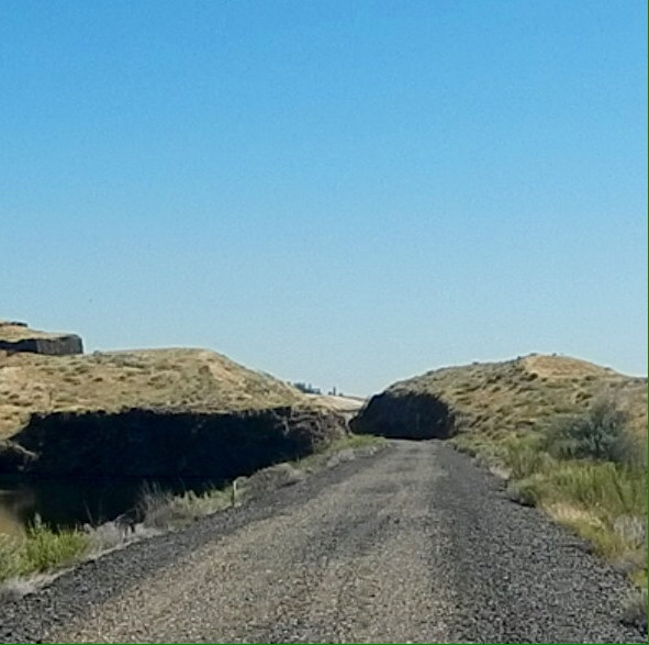 Unser Plan ist, den einige Meilen ausserhalb von Pasco beginnenden „Columbia Plateau Trail“ zu nehmen. Es st ein u.a. als Veloweg auf altem Bahntrasse angepriesener State Park. Die ersten und letzten je ca 20 Meilen (von insgesamt ca. 130) sollen bereits ausgebaut sein. Wir finden das Trasse tatsächlich unten am Snake River in wunderschönen Basalt und Löss-Steilwänden. Nach ca 10 km geben wir aber das Vorhaben auf – zu grob sind die Steine auf diesem „Veloweg“ – und kehren nach extrem steilem Aufstieg wieder auf die Hauptstrasse zurück.