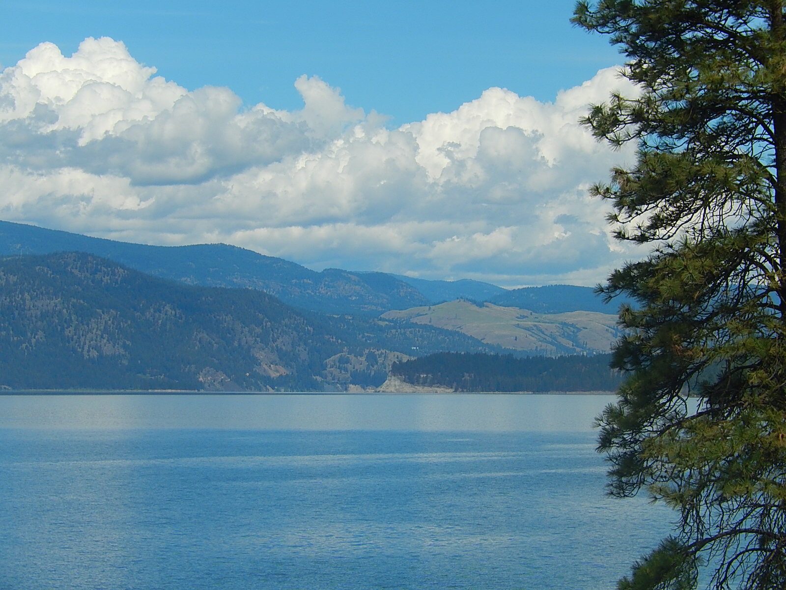 Obwohl sich die Gewitterwolken während des Museumsbesuchs verzogen haben nehmen wir den Anstieg aus dem Flusstal hinaus nachdenklich und bedrückt unter die Räder.Abgesehen vom obligaten Spielkasino nehmen wir von der Native-American Besiedlung trotz Reservat wenig wahr. Die Namen der zwei nachfolgenden Siedlungen geben schön die Vielfalt in diesem Abschnitt des Columbiatals wider. Fruitland für die vielfältige Landwirschatft inkl Weinbau. Hunters für die grossen Wild- und Fischbestände, die wir auch wirklich beobachten können. Die Nacht verbringen wir auf eine einfachen Campingplatz am Lake Roosevelt (Stausee) mit wunderbarer Abendstimmung. Es ist wirklich einmalig, an einem See zu sitzen und genau zwei Lichter im ganzen Umkreis zu sehen!