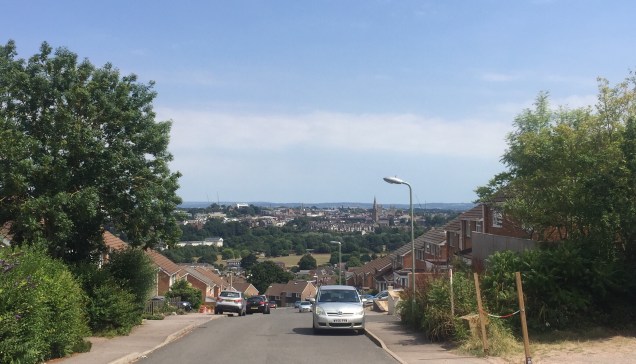 Wir haben eine kurze Etappe mit viel Höhendifferenz vor uns und brechen früh auf. Im gewohnten auf und ab erreichen wir die Vororte von Exeter. Dann entscheiden wir uns für einen Radweg entlang der Hauptstrasse und landen irgendwann auf dieser Strasse im Aggloverkehr – anstrengend! Im Vorstadt Aldi bekommt man nur vier Energydrinks auf’s mal, also gehts ohne Energydrink weiter. In einem Park essen wir zu Mittag und wundern uns erneut, dass die Parkbänke in diesem Land ausnahmslos in der Mittagssonne stehen.