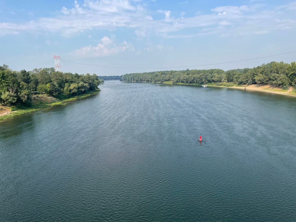 Bald darauf rollen wir in die Ebene hinaus, vermeiden die Nähe zu Bijeljina. Trotzdem hat es erstaunlich viel Verkehr und erstaunlich viele Dörfer. Die Gegend ist sehr dicht besiedelt. Der Pirol singt, wie fast jeden Morgen in dieser Woche an der Drina. An der Grenze warten bereits Dutzende Fahrzeuge und ebensoviele Lastwagen. Wir fahren vorbei und werden sofort zum Schalter für Busreisende gewinkt. Das gibt den Stempel Nummer sechs von Bosnien in fünf Tagen. Dann dürfen wir ausreisen und die Sava überqueren.