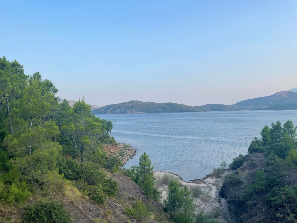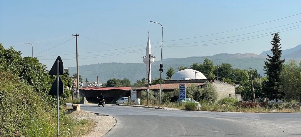 Wenn Temperaturen über 30 Grad prognostiziert sind, stehen wir sehr früh auf um vor Sonnenaufgang loszufahren und wir nehmen uns kurze Etappen vor, damit wir vor dem Mittag bereits am nächsten Ort ankommen. So machen wir es auch diesmal. Frühstück im Hotelzimmer: es gibt Müesli, eine Frucht und Fruchtsaft. Dann rollen wir aus der Stadt, zuerst auf der Autobahn, dann auf einer Landstrasse. Es ist der Weg von der Hafenstadt zur Hauptstadt, entsprechend ist die Gegend hier dicht besiedelt und es hat viel Verkehr. Die Strassen sind sehr gut ausgebaut, es hat eine breite Schulter, die sich fast wie ein Radstreifen anfühlt. Wir kommen gut voran, trotzdem spüren wir die Hitze und den Staub. Es wird schnell klar, das Agritourismo kurz vor Laç, also nur rund 60 Kilometer von der Küste entfernt, wird unser erstes Ziel. Die Gastgeber sind sehr freundlich, wundern sich nicht über unsere frühe Ankunft, sondern stellen sofort kaltes Wasser bereit.