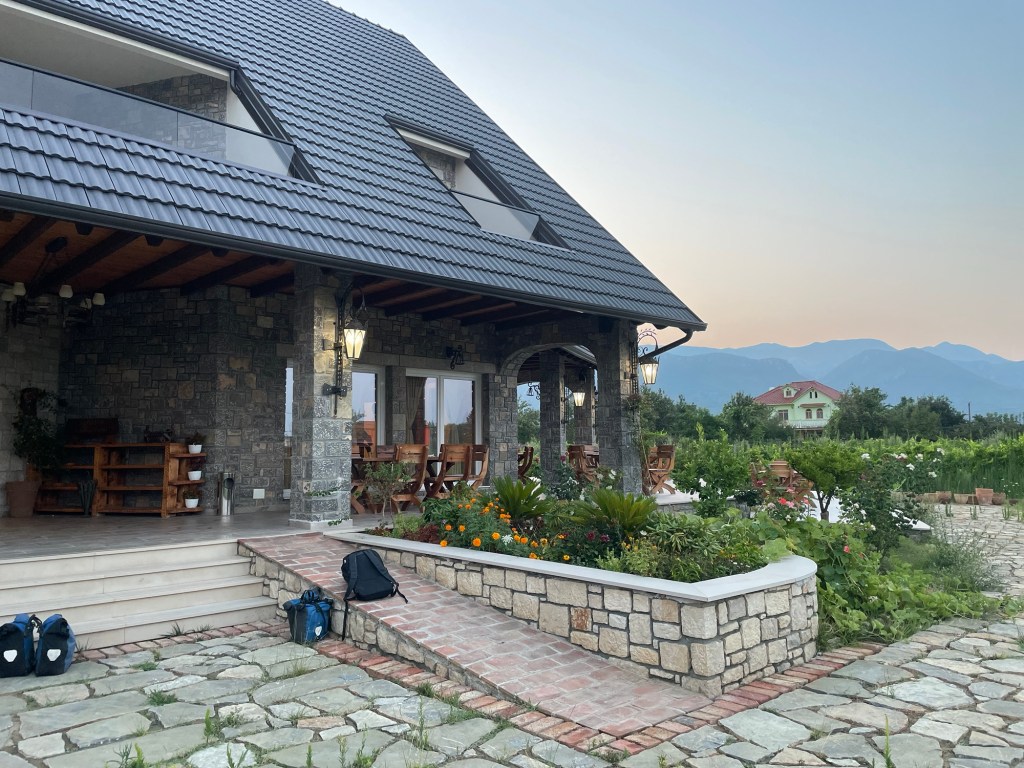In Fierze wollen wir zuerst Wasser kaufen. Es gibt keine grossen Flaschen, aber der junge Mann an der Tankstelle füllt unsere fast Leeren gerne auf. Hier trinkt man das frische Wasser aus den Bergen. Bis Bajram Curri sind es rund 17 Kilometer. Ob das geht in der Nachmittagshitze? Im ersten Aufstieg kommt uns ein kühler Bergwind entgegen. Dann schiebt sich eine Wolke vor die Sonne. So kommen wir gut voran. Wir fragen in einem schönen Gasthof an der Strasse nach einem Zimmer und haben wieder Glück. Auch für diese Nacht haben wir eine sehr schöne Unterkunft mit hervorragendem Essen und sehr freundlichen Gastgebern.