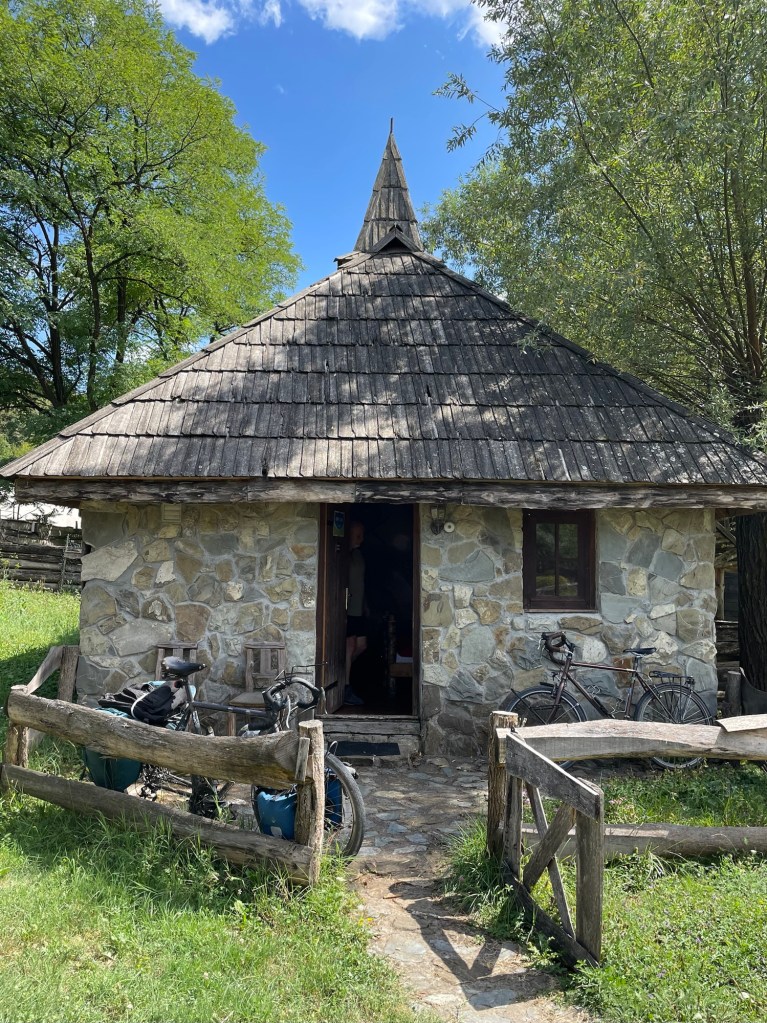 In Tuzla lassen wir uns das Frühstück nicht entgehen. Es wird um 7 Uhr auf das Zimmer gebracht und ist super! Entsprechend spät rollen wir aus der Stadt. Wir sind jetzt Richtung Banja Luka unterwegs, und wir sind nicht die einzigen. Von der Etappe bis Doboj kann ich eigentlich nur sagen: 80 Kilometer konzentriertes balancieren auf der weissen Linie oder besser auf den 10 Zentimetern Asphalt rechts davon. Von der Umgebung sieht man wenig bis gar nichts. Dafür ist die Unterkunft ein Hingucker: wir schlafen in einem Häuschen eines Freilichtmuseum.