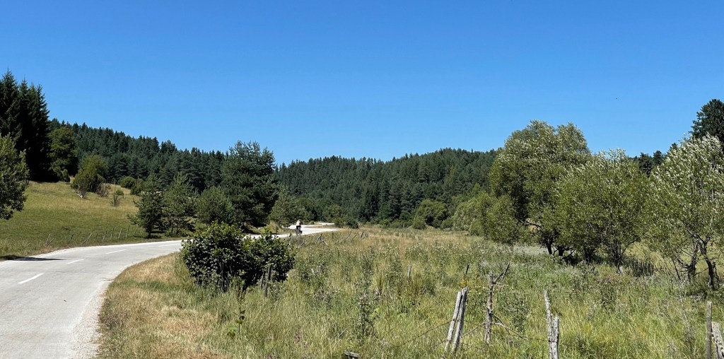 Und so ist es. Bald darauf rollen wir auf ein schönes Strässchen und durch die Hochebene Bosniens – die Romanija, Hügel auf, Hügel ab. Um diese Gegend ranken sich zahlreiche Legenden und Geschichten. So ist hier die Hajducija entstanden. Die Heiducken werden als balkanische Robin Hoods romantisiert, die die (christliche) Landbevölkerung gegen die (osmanischen) Herrscher verteidigt haben sollen, wobei die Grenzen zum „normalen“ Wegelagerertum vermutlich fliessender gewesen sein dürfte, als dies in den Volksliedern besungen wird. Im zweiten Weltkrieg war die abgelegene Romanija ein Zentrum der jugoslawischen Partisanen im Kampf gegen die faschistischen Verbände der Besatzer, der Ustascha und der Tschetniks. Im Bosnienkrieg war die Romanija das Zentrum der serbischen Aktivitäten in Bosnien. Heute ist sie ein Tummelfeld für outdooor-Aktivitäten.